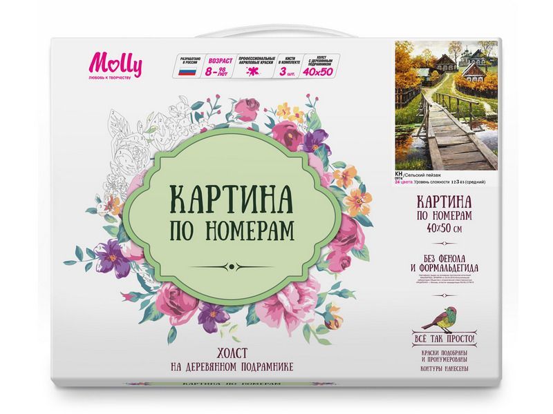 Картина по номерам 40х50 СЕЛЬСКИЙ ПЕЙЗАЖ (24 цвета)