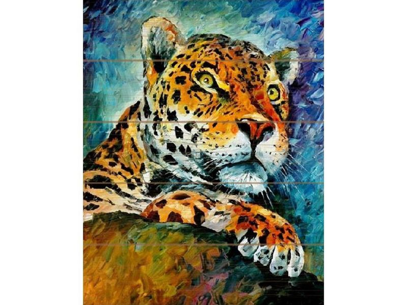 Картина по номерам на дереве 40х50 Афремов. Леопард (27 красок)