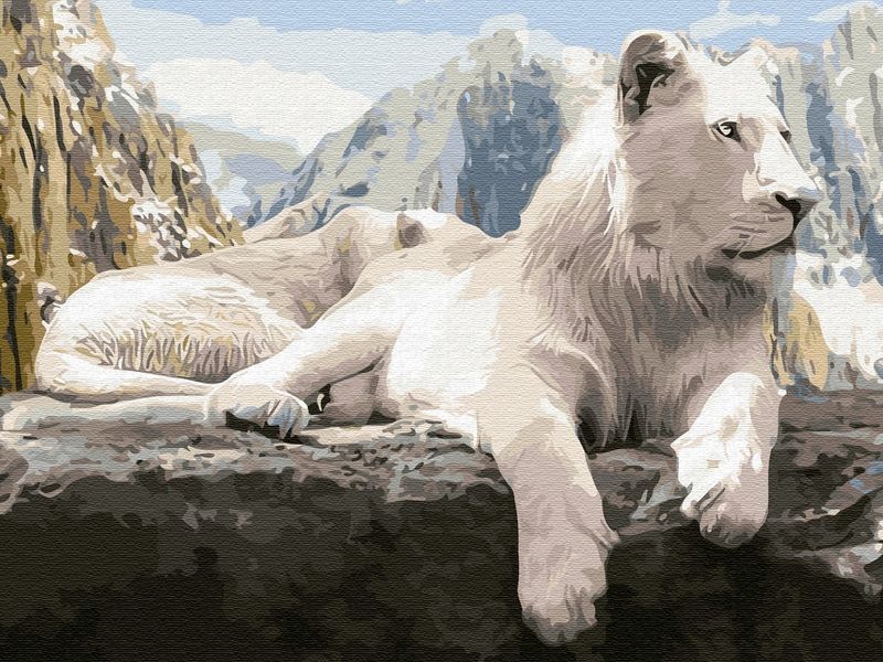 Используя кисти и краски, на основе из натурального дерева можно нарисовать грациозного белого льва с царственной осанкой на фоне горного пейзажа. Для такого творчества не требуются специальные художественные навыки. Нужно лишь следовать инструкции и время от времени сверяться с цветовой схемой рисунка. Для выделения отдельных зон есть 2 баночки лака. В подарок - держатель для красок. В наборе есть крепление на стену.
