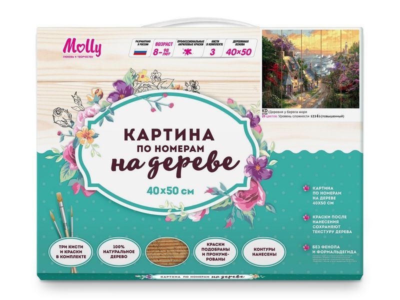Картина по номерам на дереве 40х50 ДЕРЕВНЯ У БЕРЕГА МОРЯ (28 цветов)
