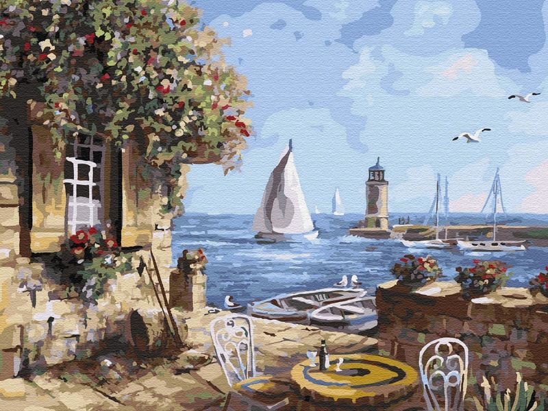 Картина по номерам на дереве 40х50 ЛЕТНЕЕ КАФЕ (28 цветов)