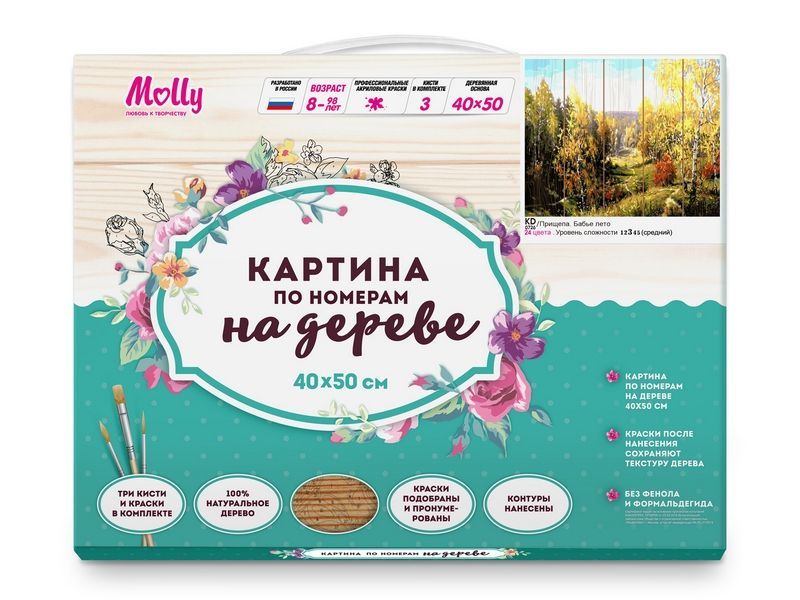 Картина по номерам на дереве 40х50 ПРИЩЕПА. БАБЬЕ ЛЕТО (24 цвета)