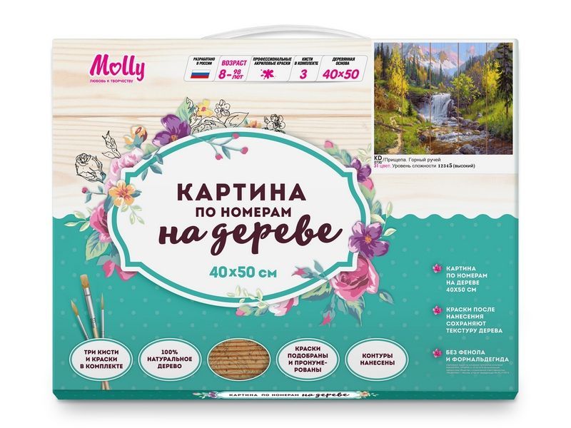 Картина по номерам на дереве 40х50 ПРИЩЕПА. ГОРНЫЙ РУЧЕЙ (31 цвет)
