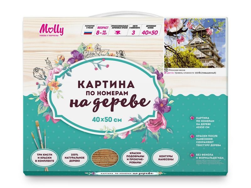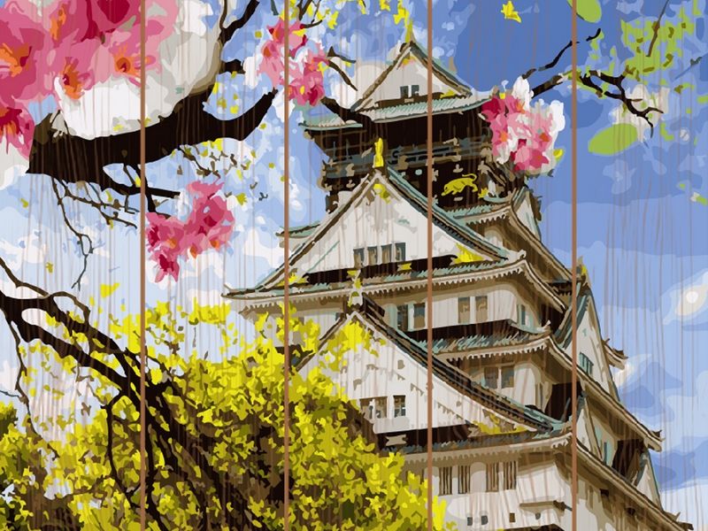 Картина по номерам на дереве 40х50 ЯПОНСКАЯ ВЕСНА (28 цветов)