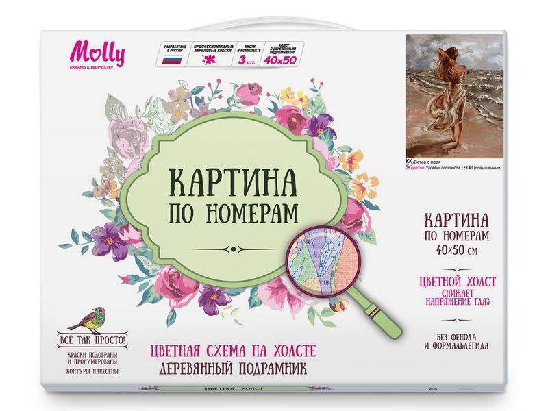 Картина по номерам с цветной схемой 40х50 ВЕТЕР С МОРЯ (28 цветов)