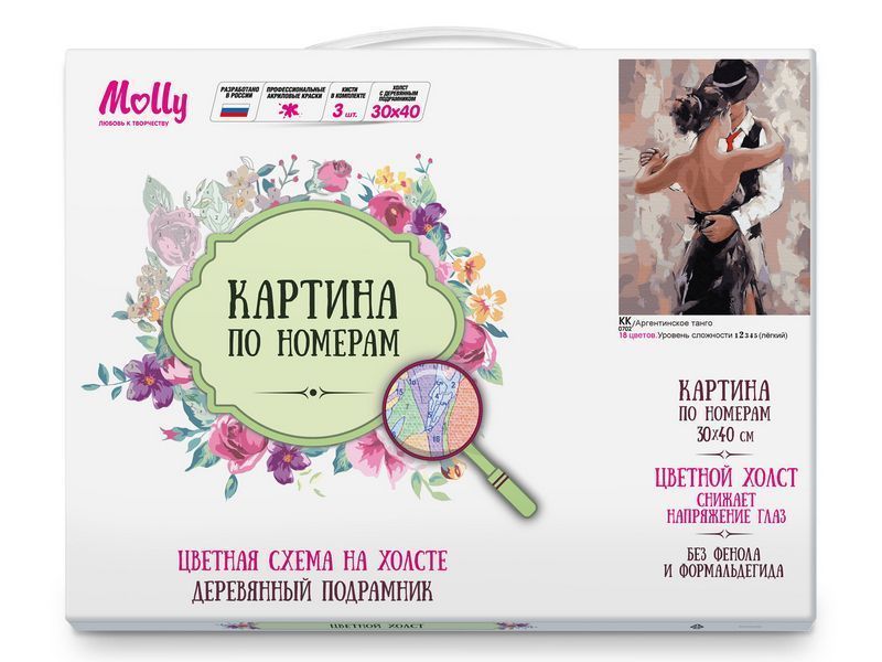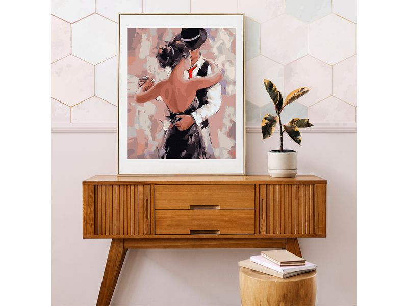 Используя кисти и краски, на холсте можно нарисовать пару, танцующую Аргентинское танго - нежный и страстный танец любви. Для такого творчества не требуются специальные художественные навыки. Нужно лишь следовать инструкции и время от времени сверяться с цветовой схемой рисунка.