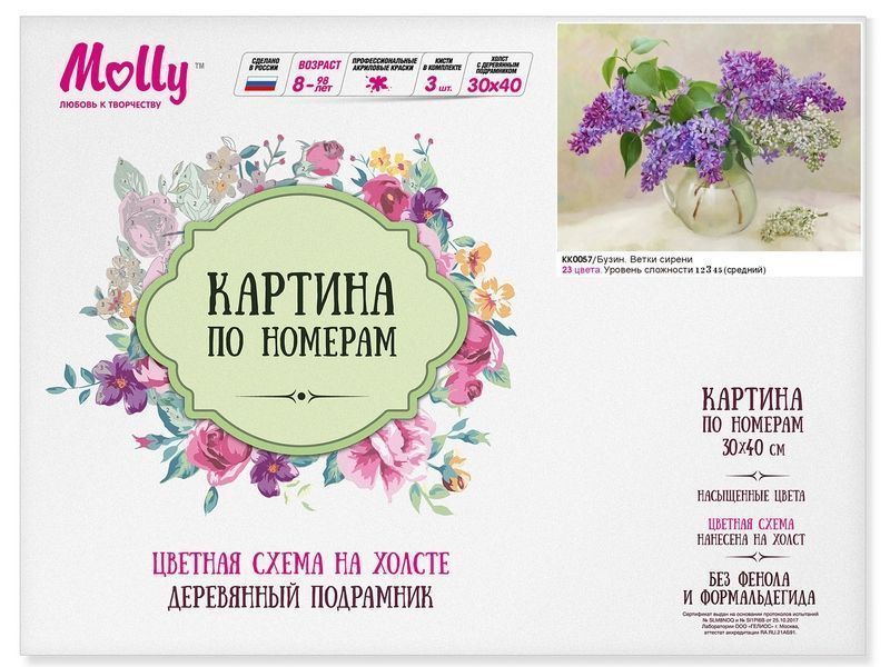 Используя кисти и краски, на холсте можно нарисовать картину Игоря Бузина "Ветка сирени". Для такого творчества не требуются специальные художественные навыки. Нужно лишь следовать инструкции и время от времени сверяться с цветовой схемой рисунка.