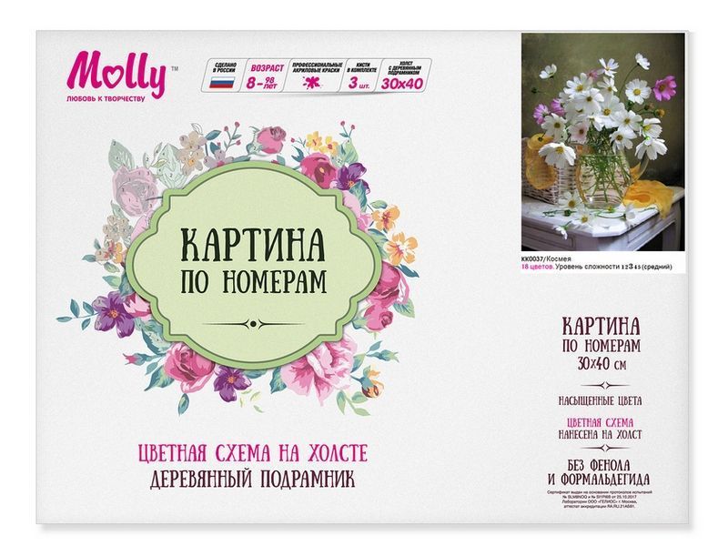 Картина по номерам с цветной схемой на холсте (30х40) КОСМЕЯ (20 цветов)
