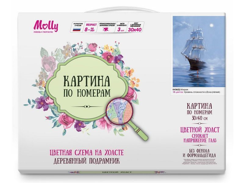 Картина по номерам с цветной схемой на холсте 30х40 Мираж (18 цветов)