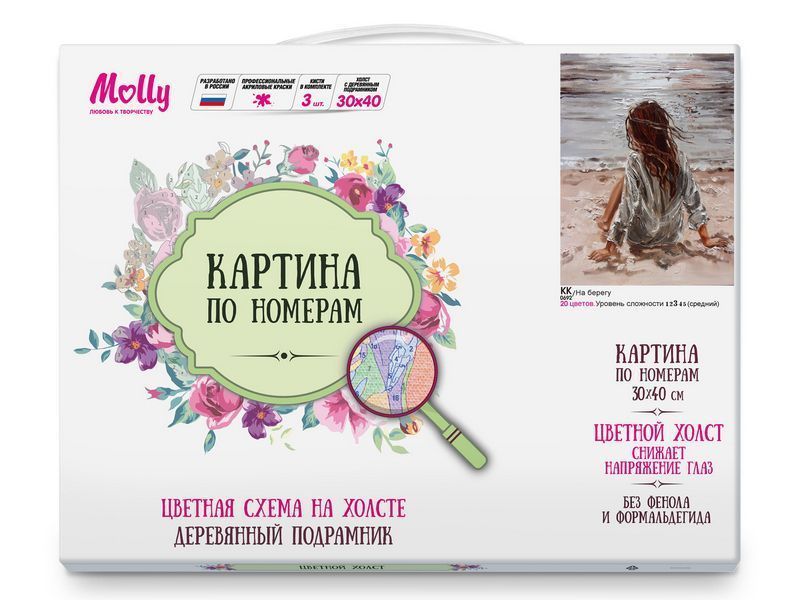 Картина по номерам с цветной схемой на холсте 30х40 НА БЕРЕГУ (20 цветов)