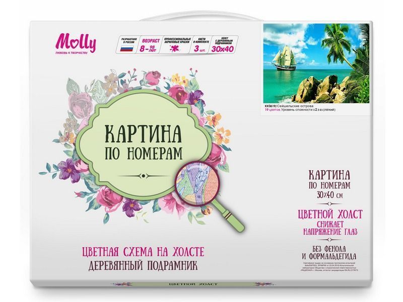 Используя кисти и краски, на холсте можно нарисовать райский пейзаж с изображением Сейшельских островов. Ясная погода, пальмы и плывущая где-то у линии горизонта яхта. Для такого творчества не требуются специальные художественные навыки. Нужно лишь следовать инструкции и время от времени сверяться с цветовой схемой рисунка.
