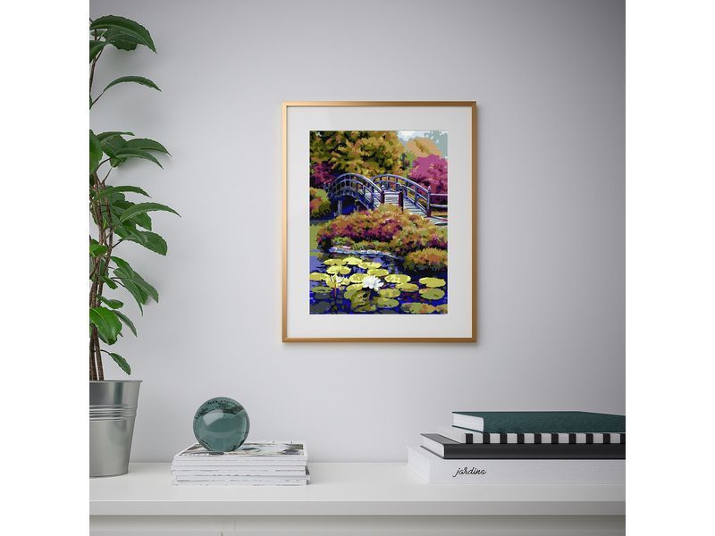 Используя кисти и краски, на холсте можно нарисовать живописный японский сад. Японским садом называют естественный ландшафт в миниатюре. При этом характерной чертой такого сада является отсутствие симметрии, а также постепенно открывающиеся глазу таинственные уголки. Для такого творчества не требуются специальные художественные навыки. Нужно лишь следовать инструкции и время от времени сверяться с цветовой схемой рисунка.