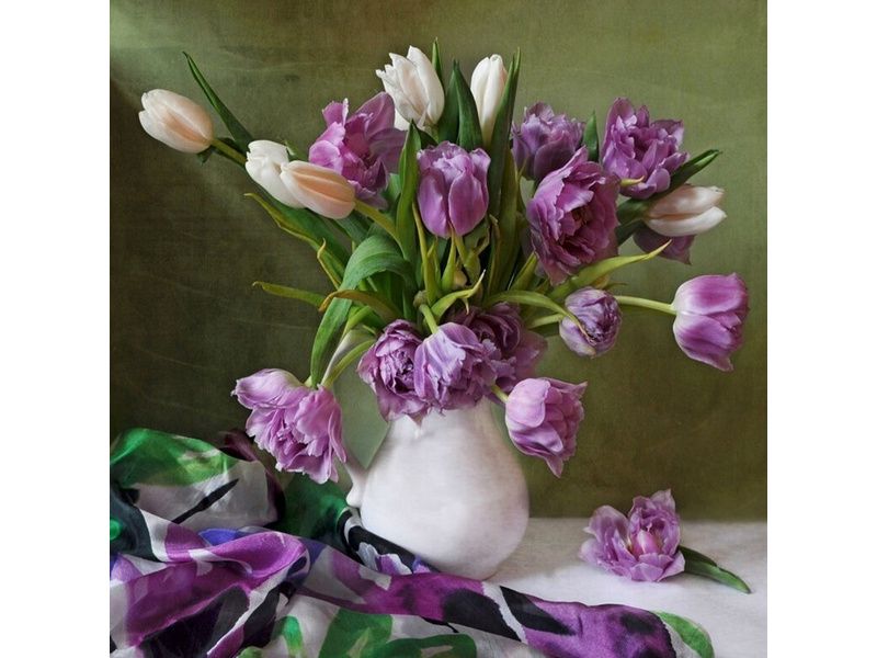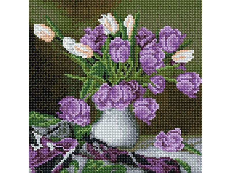 Картины мозаикой 30х30 БУКЕТ С ТЮЛЬПАНАМИ (28 цветов)