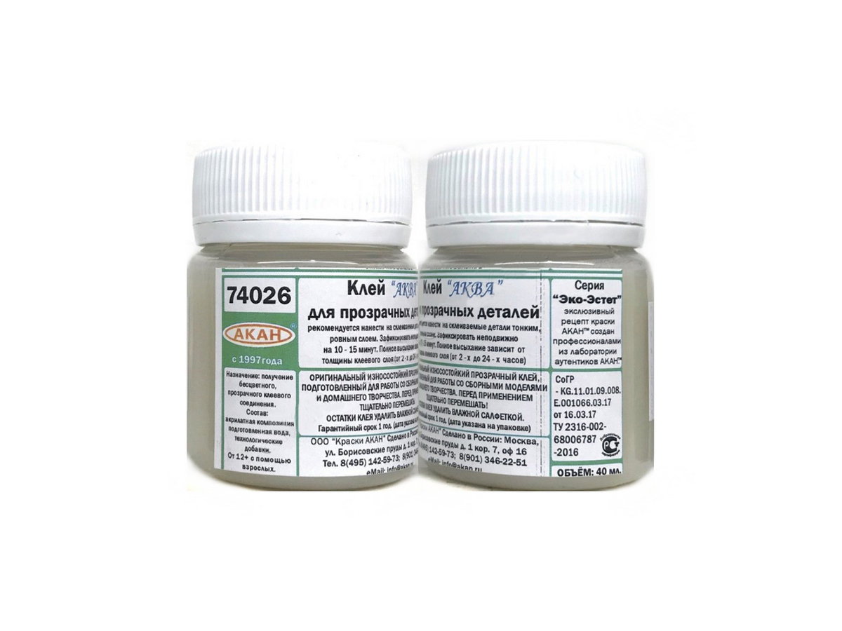 Клей АКАН “Аква” для прозрачных деталей, 40 мл