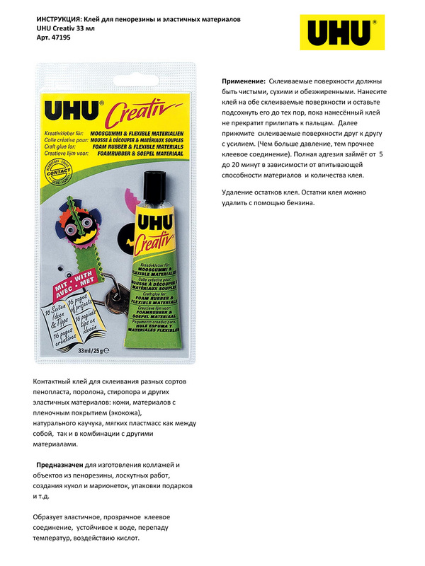 Клей для пенорезины UHU Creativ, 33 мл, блистер