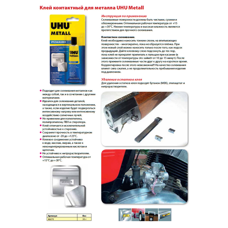 Клей контактный для металлов UHU Metall, 30 г, блистер