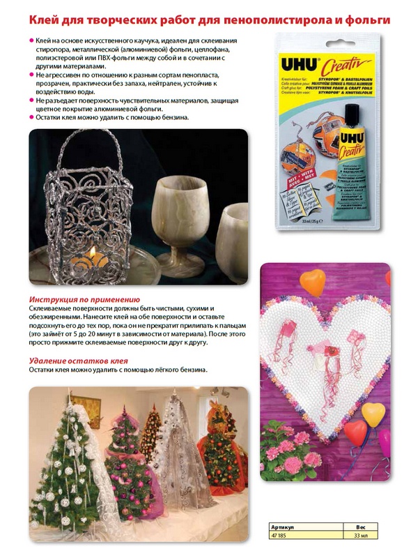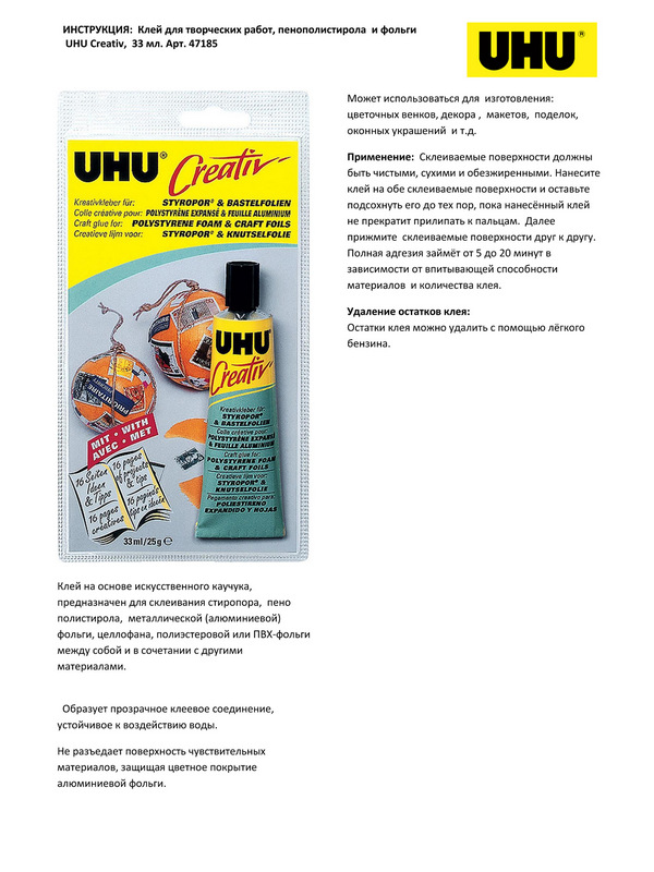 Клей для пенополистирола и фольги UHU Creativ, 33 мл, блистер
