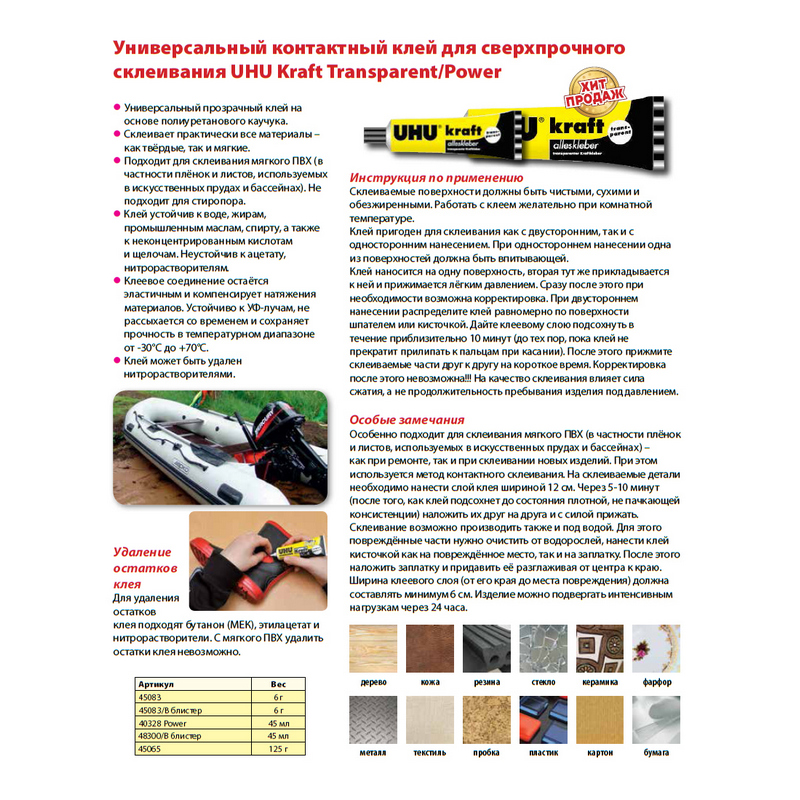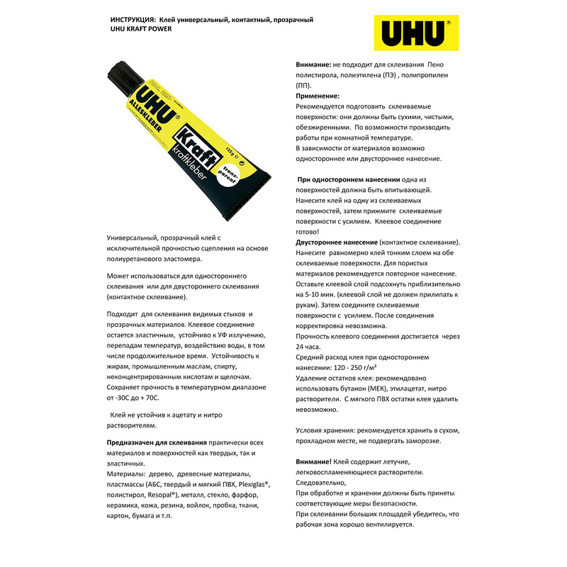 Клей универсальный UHU Kraft/Power прозрачный, 45 г