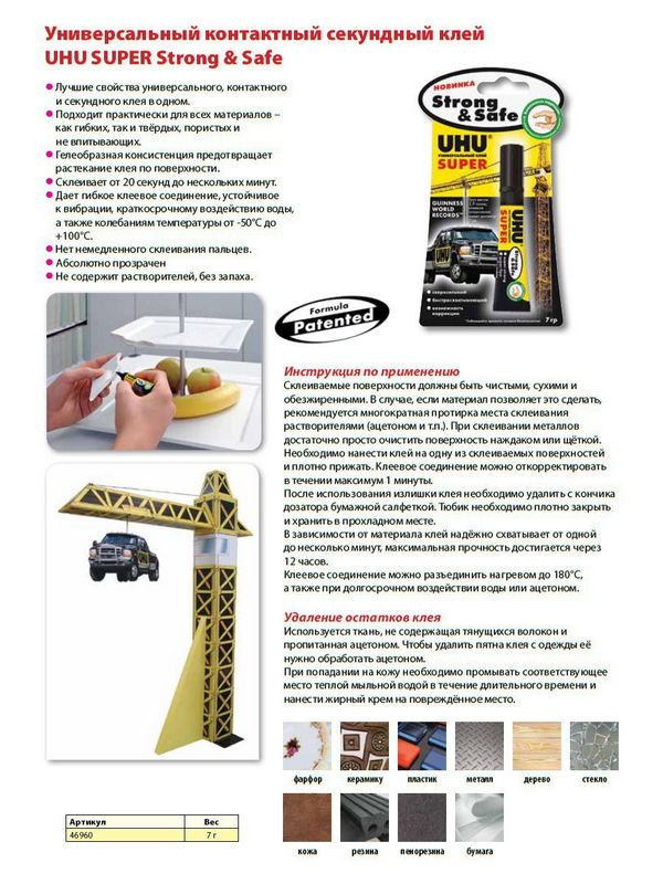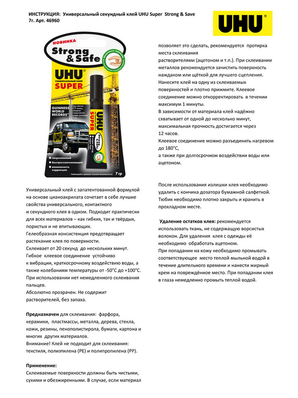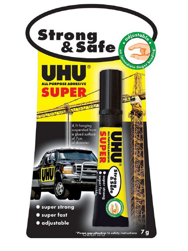 Клей универсальный секундный UHU Super Strong & Safe, 7 г, блистер