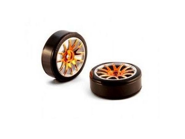 Колеса с пластиковыми покрышками (шины Himoto 09001 + диск 82827PG) для радиоуправляемых шоссе Himoto Hi4163, Hi4163BL масштаба 1/16.