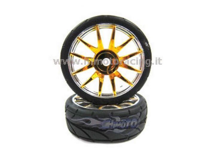 Колеса в сборе (шины Himoto 82827 + диск 82827PG) для радиоуправляемых моделей Himoto масштаба 1/16.