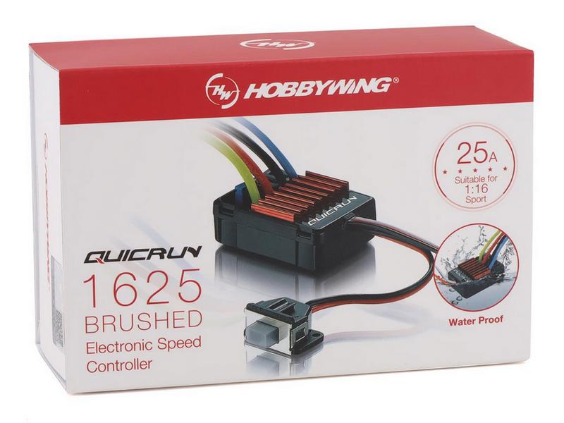 Влагозащищённый регулятор оборотов HobbyWing QuicRun WP-1625 25А (QuicRun 1625 Brushed) для коллекторных моторов. Регулятор поддерживает работу с 2-3S LiPo аккумуляторами и предназначен для автомоделей масштаба 1:16-1:18.