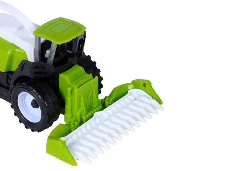 Комбайн с косилкой – это уменьшенная копия настоящей спецтехники с высокой детализацией и качественной покраской всех элементов. А особенно интересной игру сделает дополнение в виде трактора, который оснащён подвижным ковшом.