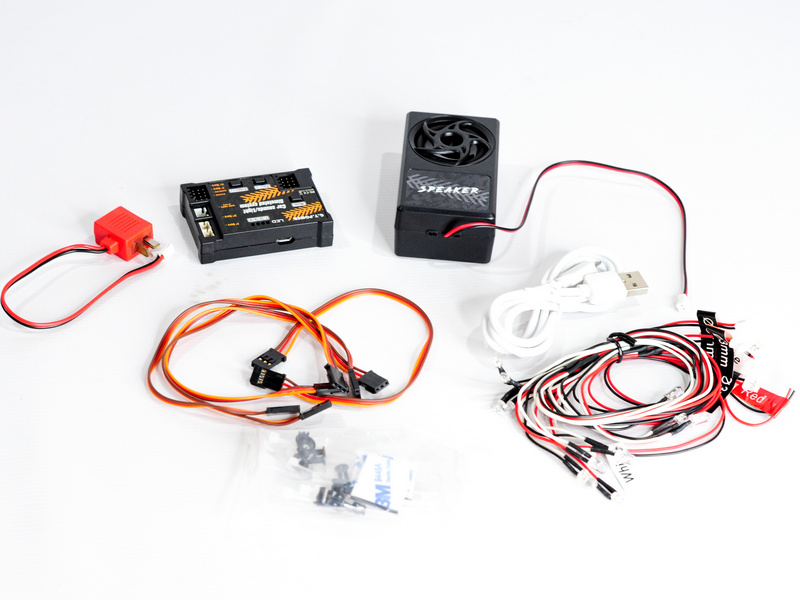Комплект 2 в 1 - свет и звук - необходимые для вашего автомобиля масштаба 1/10. Огромное разнообразие встроенных звуков для модели, чтобы выбрать, какой из них вам подходит. 6 пар светодиодов, чтобы сделать реалистичными световые эффекты вашего автомобиля.