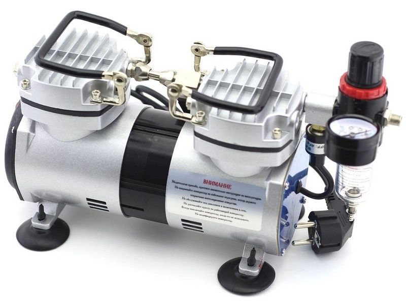 Компрессор поршневой, безмасляный. Необходим шланг для соединения с аэрографом.