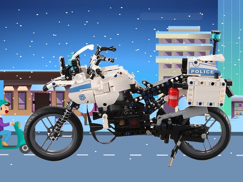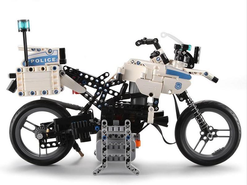 Ребенка захватит процесс сборки мотоцикла с самого начала. А когда получится полицейский мотоцикл, собранный из 539 деталей, не менее захватывающимися будут и игры. Мотоцикл управляется пультом дистанционного управления 2.4Ghz, что делает игру более интересной. Управляемый пультом, мотоцикл движется вперед, назад, влево и право.