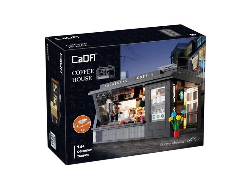 Конструктор от CADA представляет собой набор для постройки кофейни из 768 деталей. Имеет модульную конструкцию - можно отсоединить крышу и заднюю стену, чтобы изучить поразительно детализованный интерьер помещения. Дверь открывается. Внутри есть всё, что нужно для приготовления кофе, а подсветка добавит зданию реалистичности.