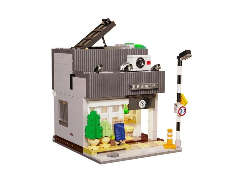 Конструктор от CADA представляет собой набор для постройки японской кофейни из 1116 деталей. Одноэтажное здание имеет модульную конструкцию. Двери раздвижные, на крыше открывается окно, есть солнцезащитная заслонка. Интерьер проработан до мелочей.