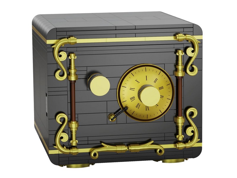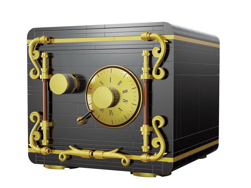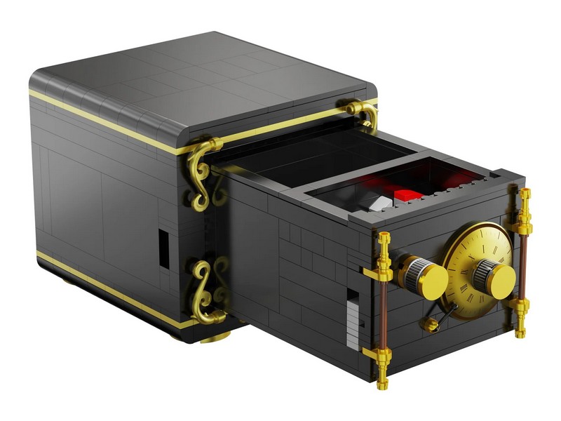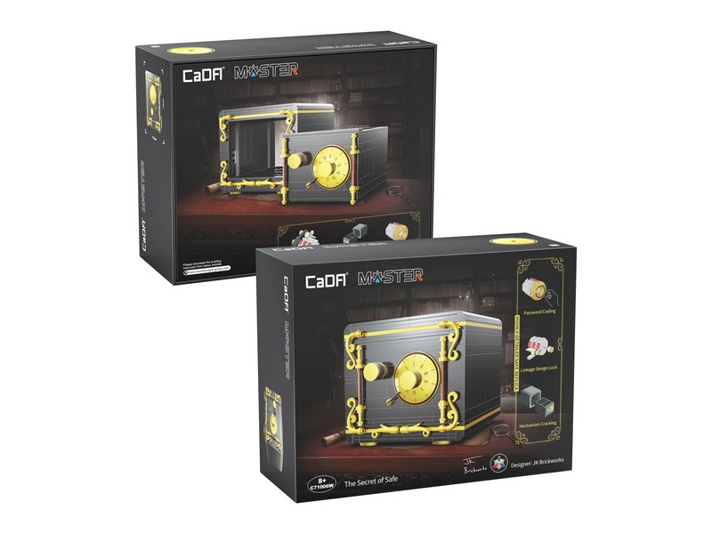 Конструктор от CADA представляет собой набор для постройки сейфа с кодовым замком из 442 деталей.