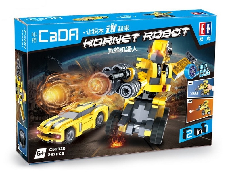 Любимая игрушка мальчишки - машинки. Конструктор CaDA Робот Hornet, собранный самостоятельно, захватит ребенка уже на этапе сборки. Получившийся робот легко способен превратиться в автомодель и разнообразит обычную игру интересными сюжетами.