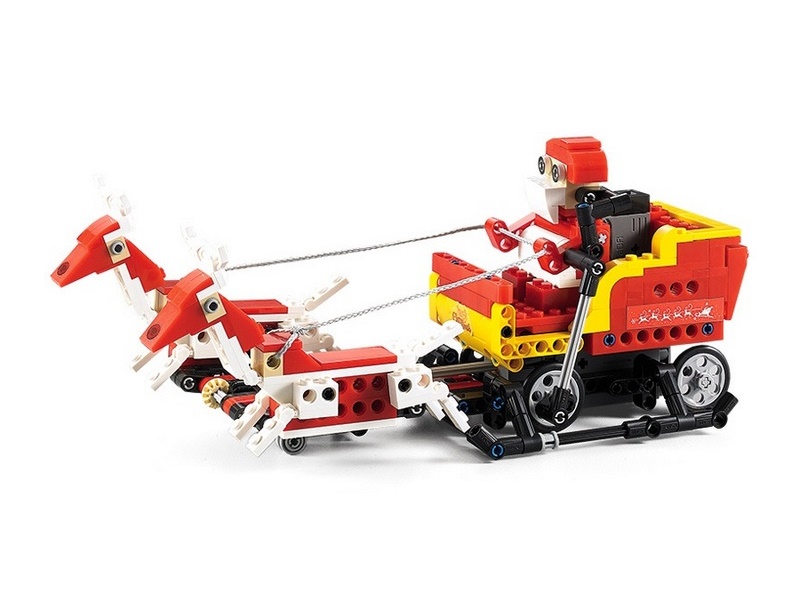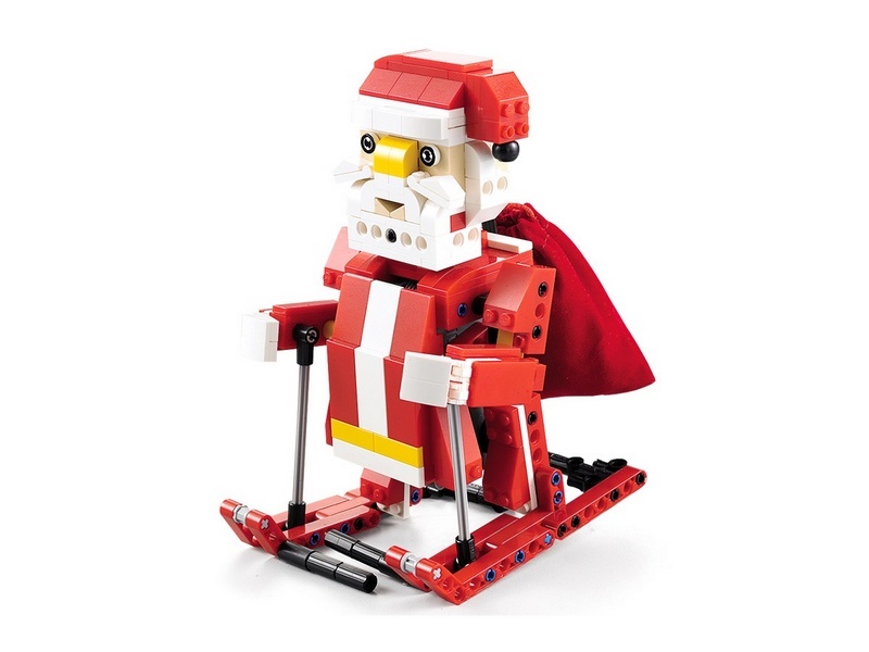 Но и это не все: набор содержит детали для сборки Санты на лыжах. 439 деталей конструктора позволяют собрать 2 варианта Санты, оленей и сани.