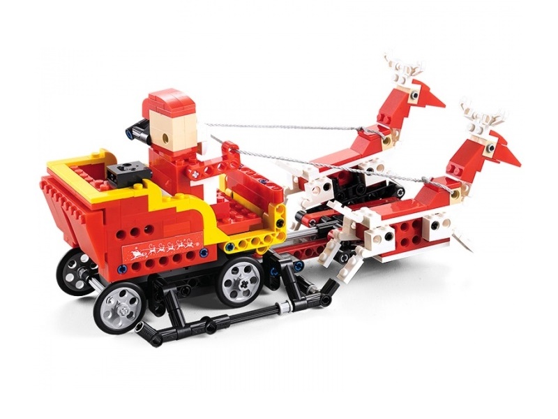 Конструктор Санта на санях - это конструктор для детей, которые верят в новогоднюю сказку. Захватывающий процесс сборки превратится в новогоднее приключение Санты. Санта соберет подарки в сани, запряженные парой оленей и поспешит к детям. Вставив 2 батарейки сани понесутся вперед.