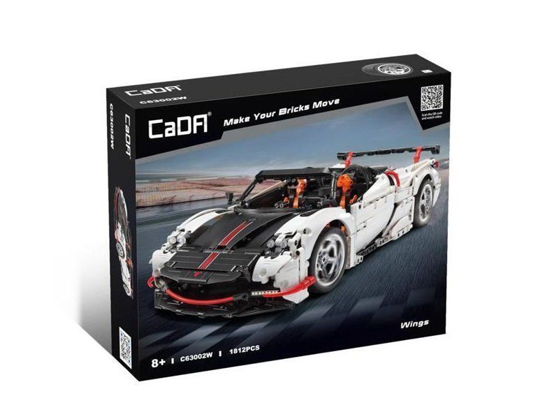 Конструктор от CADA представляет собой набор для постройки спортивного автомобиля Wings из 1812 деталей в масштабе 1/10. Имеет стильный дизайн и детальный интерьер - спортивные сиденья, открывающиеся двери, хромированные диски и многое другое. Передние колёса поворачиваются при повороте руля. Открыв крышку моторного отделения в задней части автомобиля, можно наблюдать за работой двенадцатицилиндрового двигателя. На автомобиль можно установить комплект электроники, превратив его в радиоуправляемую модель.