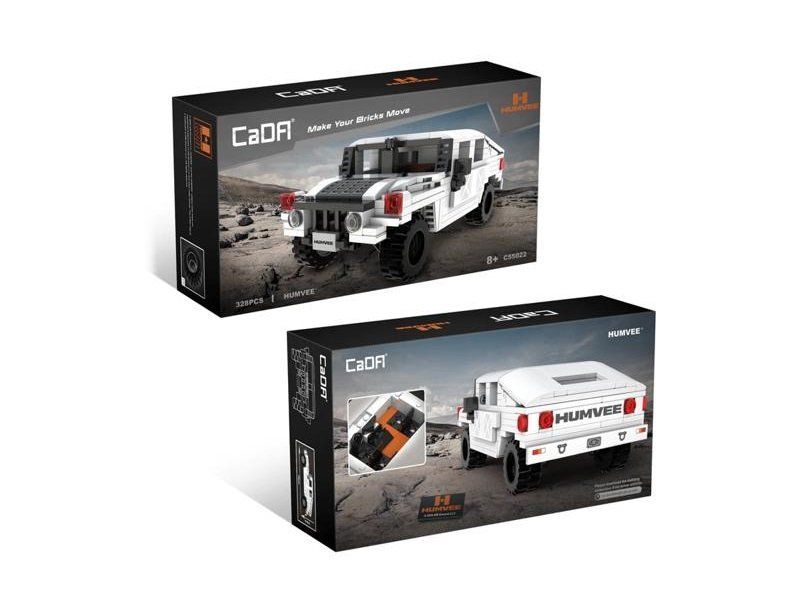 Конструктор от CADA представляет собой набор для постройки военного бронированного автомобиля HumVee из 328 деталей в масштабе 1/24. Открывается багажник.