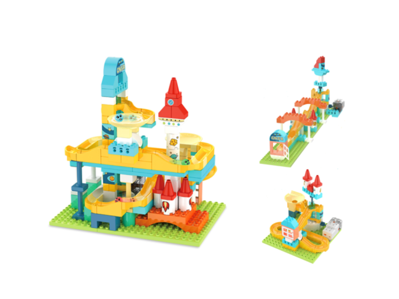 Детский конструктор Cada Запуск ракеты включает в себя 145 пластиковых деталей. После сборки конструктора ребенок запускает разноцветные шарики, которые скатываются по желобкам сверху вниз. Попадая на мини-качели шарики проходят различный путь. Но и достигнув нижней точки, игра не заканчивается. В комплекте конструктора есть специальный мотор. Он включает вертикальный подъемник, который толкает шарики наверх. И игра продолжается.