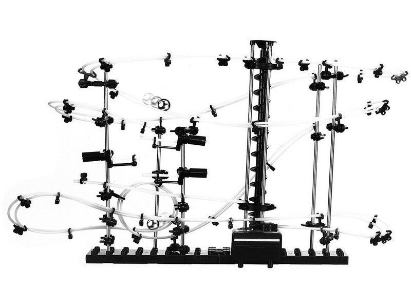 Всего есть 9 уровней сложности, различающихся по протяженности трассы, количеству элементов и размерами и конечно же сложностью сборки. В набор входит все необходимое для изобретения причудливых дорожек, петель, качелей, составляющих непрерывный путь для движения шариков. К игре приложена подробная иллюстрированная инструкция для создания базовых треков, но никто не запрещает включать фантазию и собрать SpaceRail по своему собственному проекту. Главная особенность SpaceRail - обеспечена непрерывность движения шариков (благодаря автоматическому механизму, похожему на винт Архимеда). Любоваться созданным лабиринтом можно бесконечно!