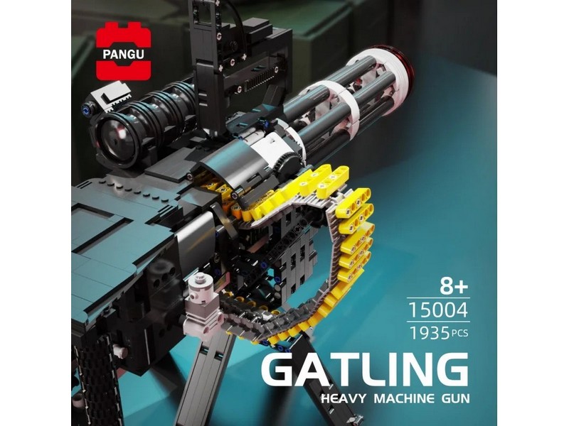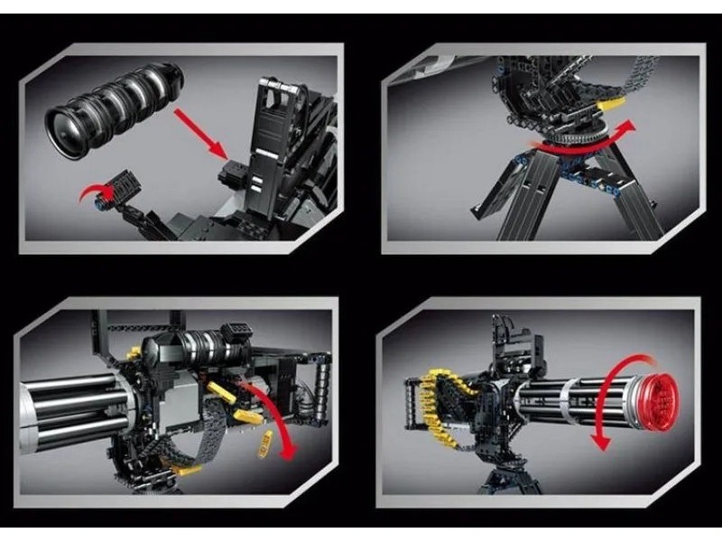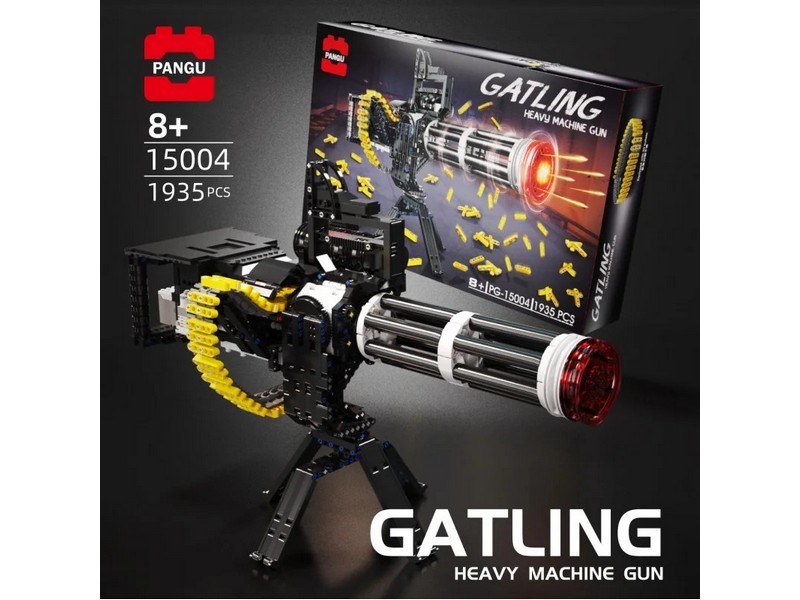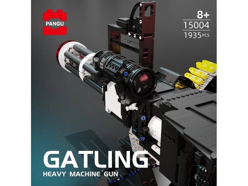 Конструктор представляет собой набор для постройки пулемета Гатлинга из 1935 деталей от RCM. Стволы вращаются, питание от пулеметной ленты - при стрельбе из патронника вылетают гильзы и пустая лента.