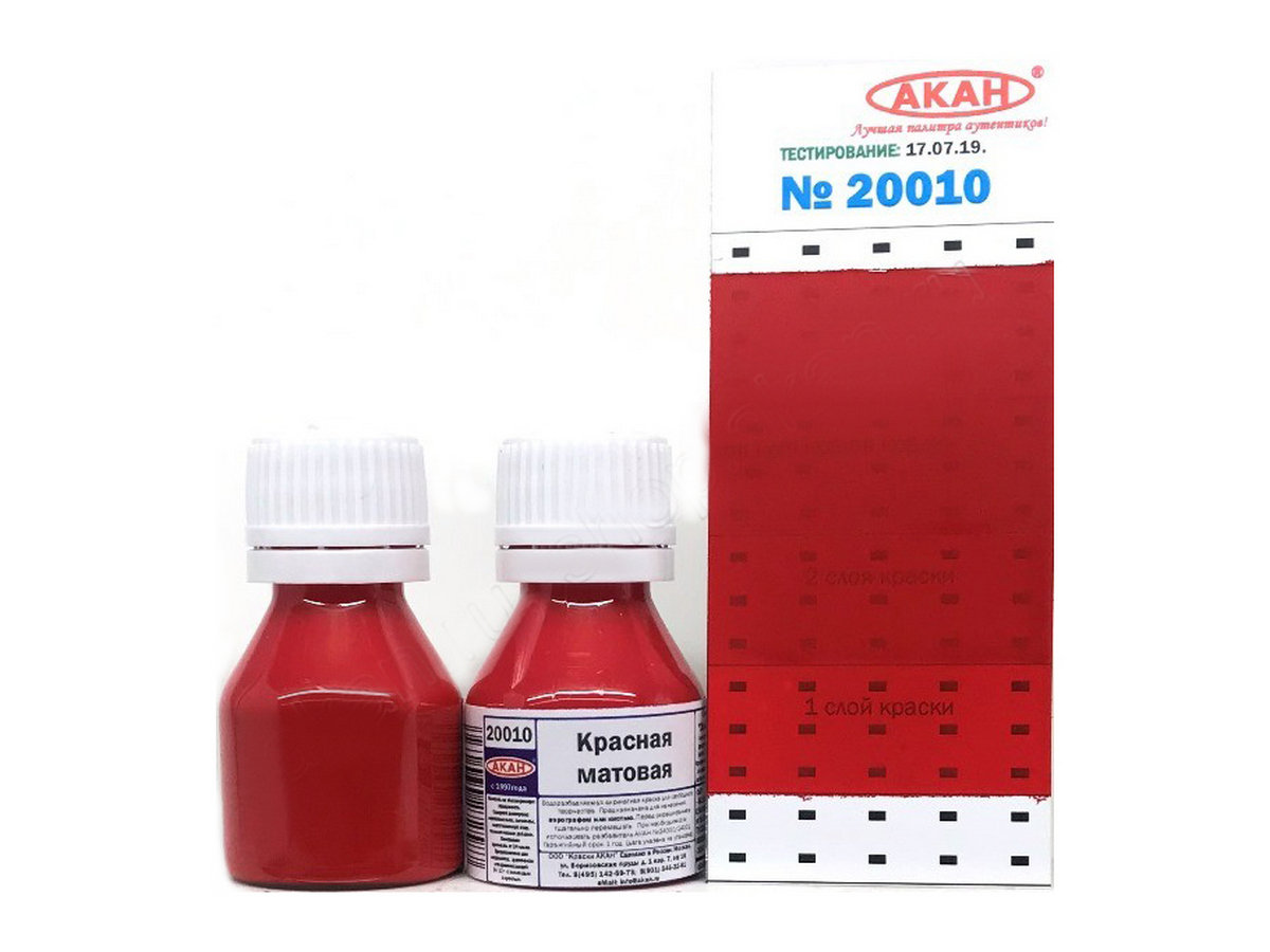 Краска АКАН акрилатлатексная Красная матовая, 10 мл