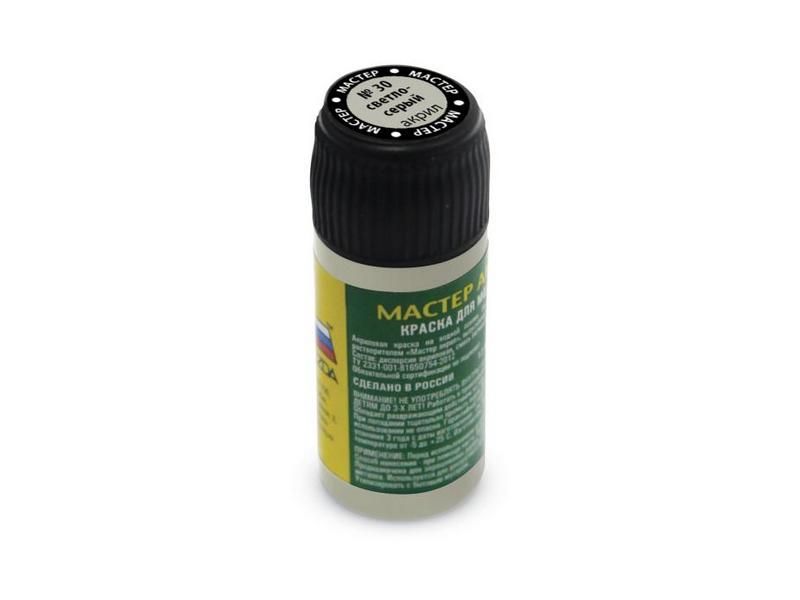 Акриловая краска на водной основе для сборных моделей и других увлечений и хобби. Краска готова для работы с ней. Разбавляется водой. Подходит для окраски моделей из пластика, металла, дерева, бумаги с помощью кисти или аэрографа. Для покраски аэрографом Рекомендуется разбавлять растворителем " Мастер акрил".