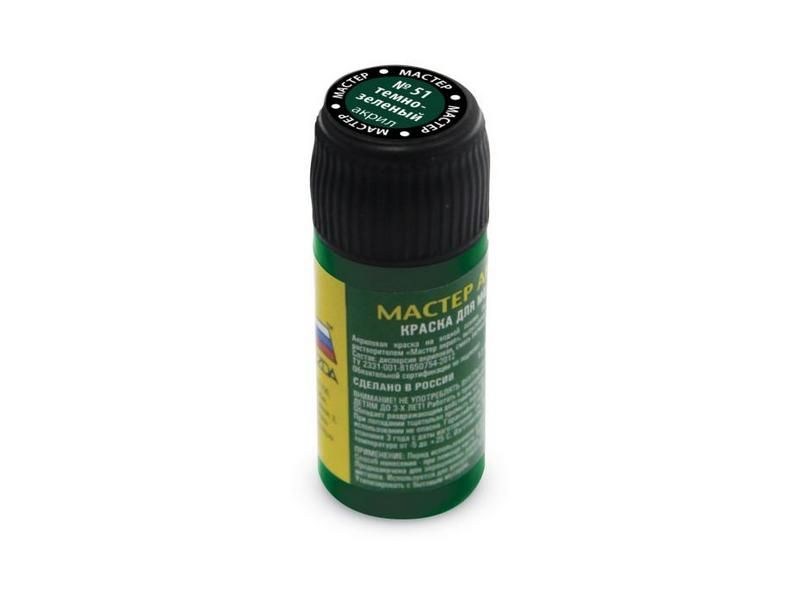 Краска ZVEZDA МАСТЕР-АКРИЛ акриловая, темно-зеленая, 12 мл
