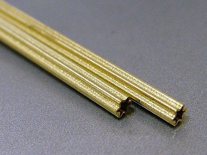 Латунная трубка с профилем звёздочки, размер по двум концам противоположных лучей около 4 мм. Длина 30 см.