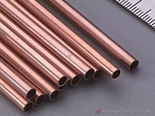 Круглая медная трубка внешним диаметром 2 мм и толщиной стенок примерно 0,36 мм. Длина 30 см. Применяется при изготовлении петель, нарезке рымов (колец), для деталей рангоута яхт и на действующих моделях. Легко гнется и обрабатывается. Количество 4 штуки.