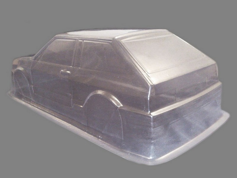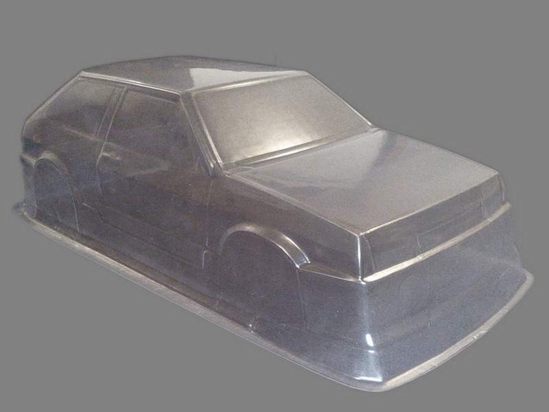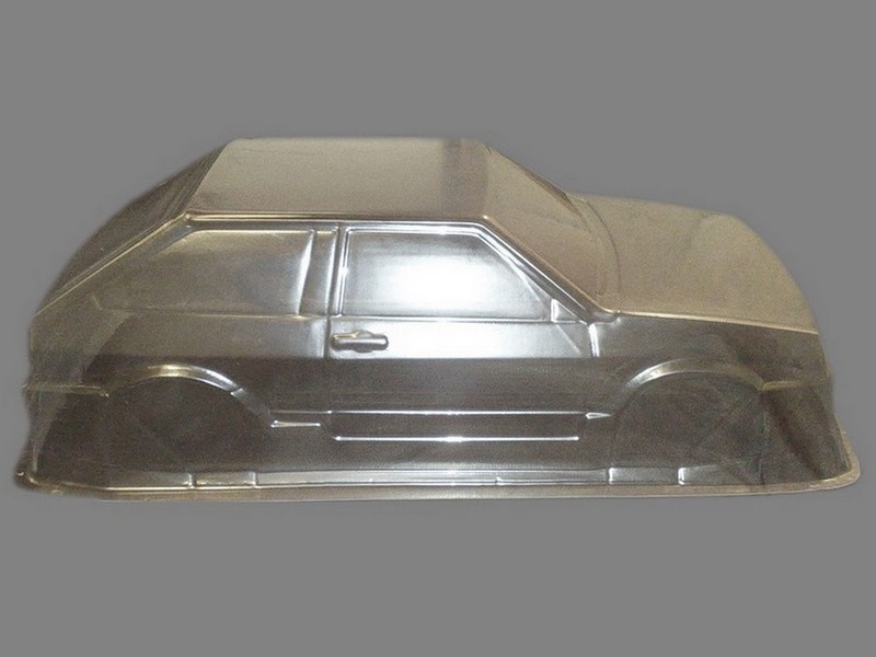 Неокрашенный кузов Ваз 2108 с отражателями и набором декалей для моделей 1:10.