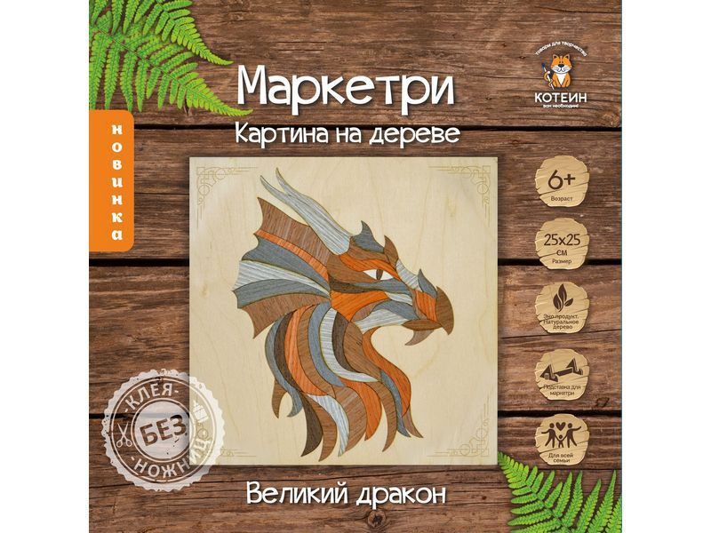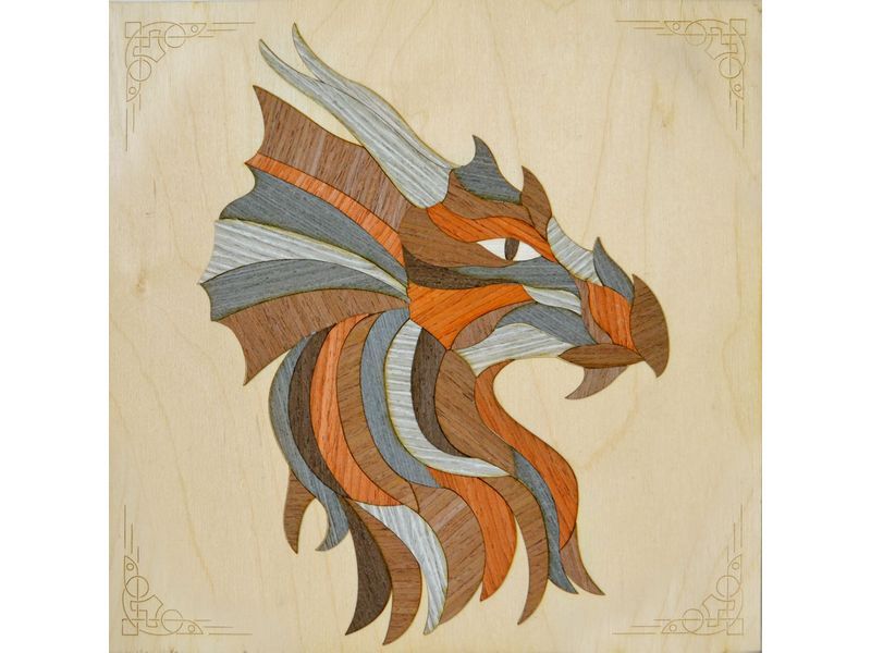 МАРКЕТРИ Картина на дереве 25X25 ВЕЛИКИЙ ДРАКОН