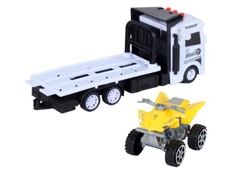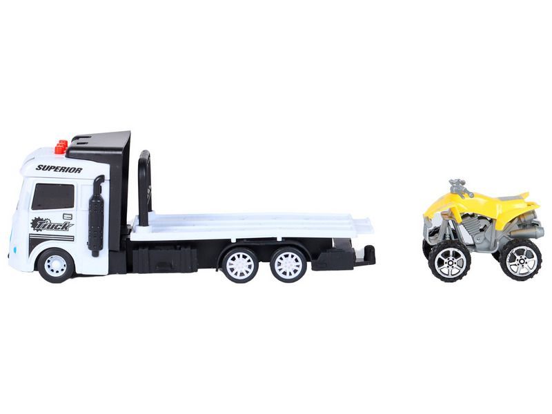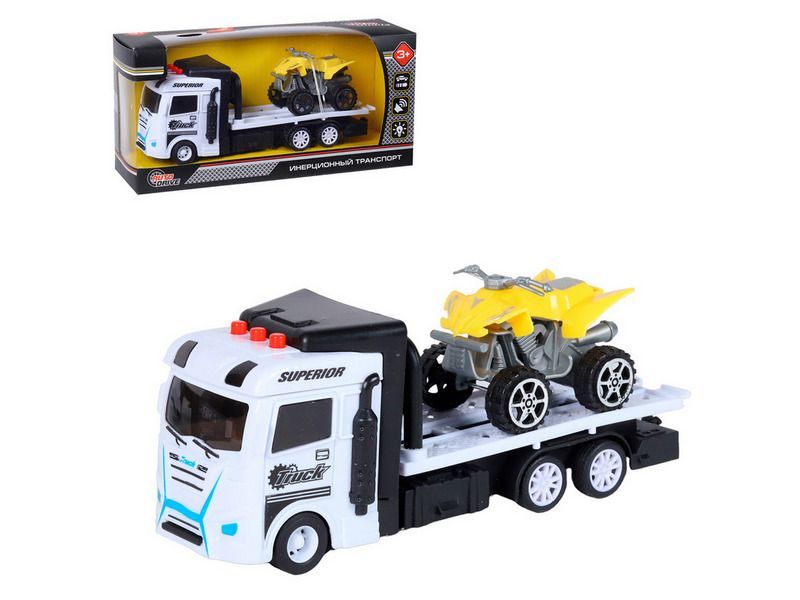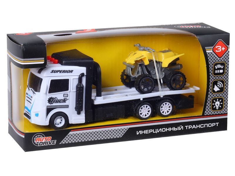 Машина AUTODRIVE Автовоз фрикционный белый, со светом и звуком + квадроцикл, в/к 23,5*7*11 см