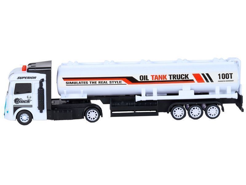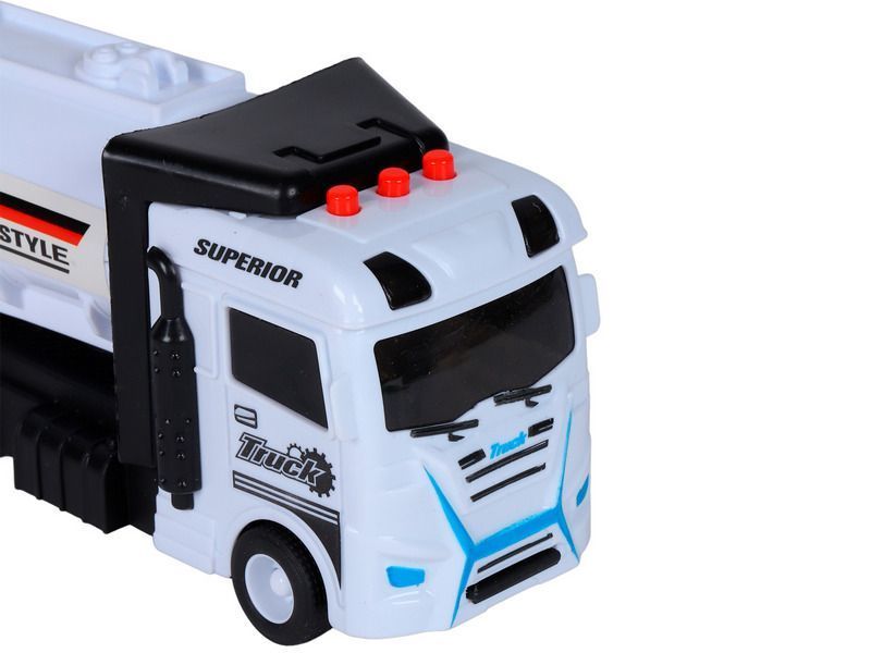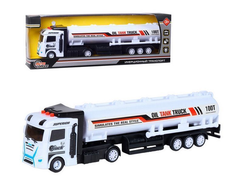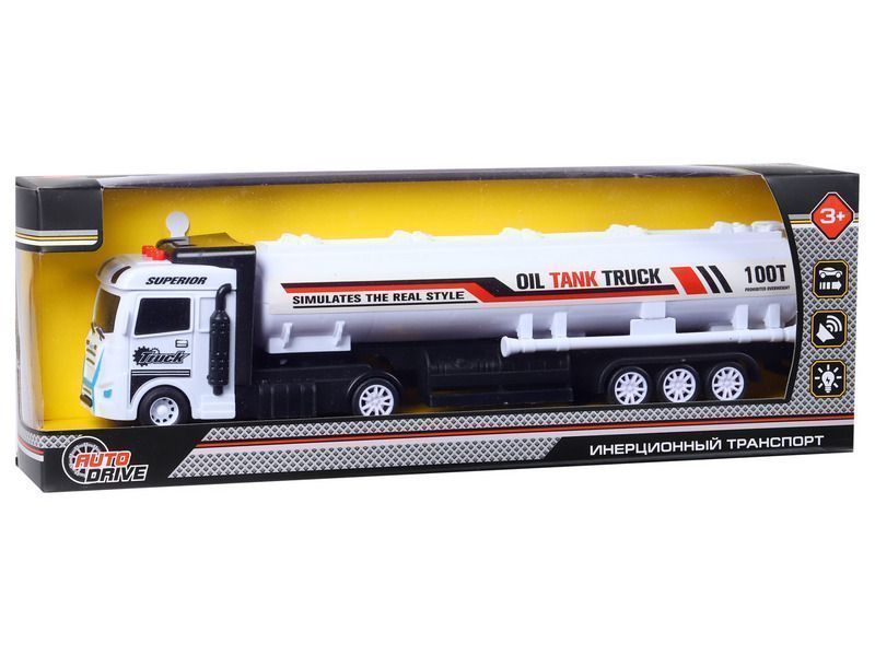 Машина AUTODRIVE Бензовоз фрикционный со светом и звуком, белый, в/к 35*6,5*12 см